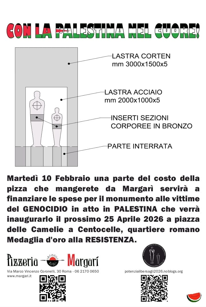 Con la Palestina nel cuore: per l’installazione di un’opera, per la memoria del genocidio